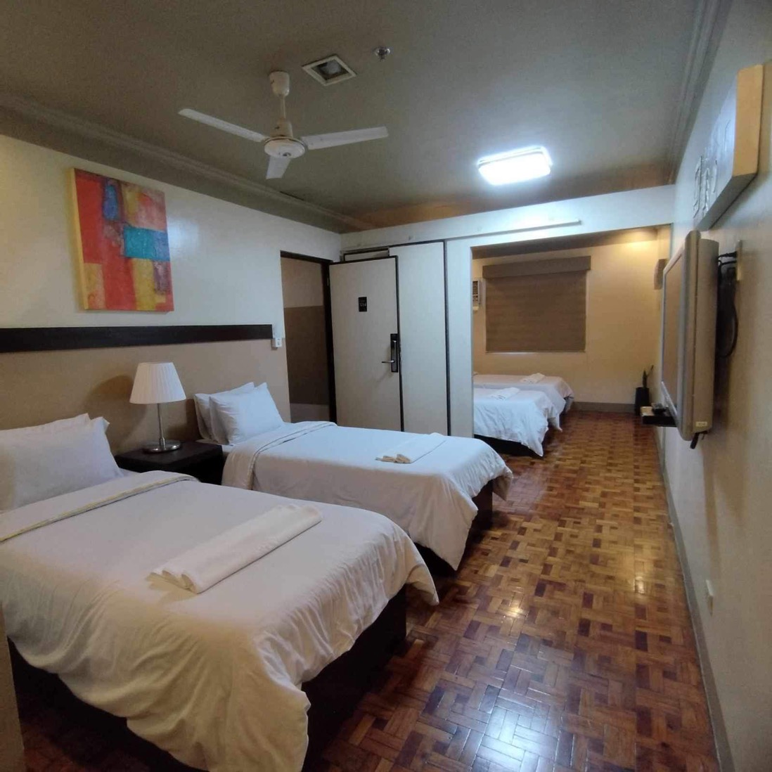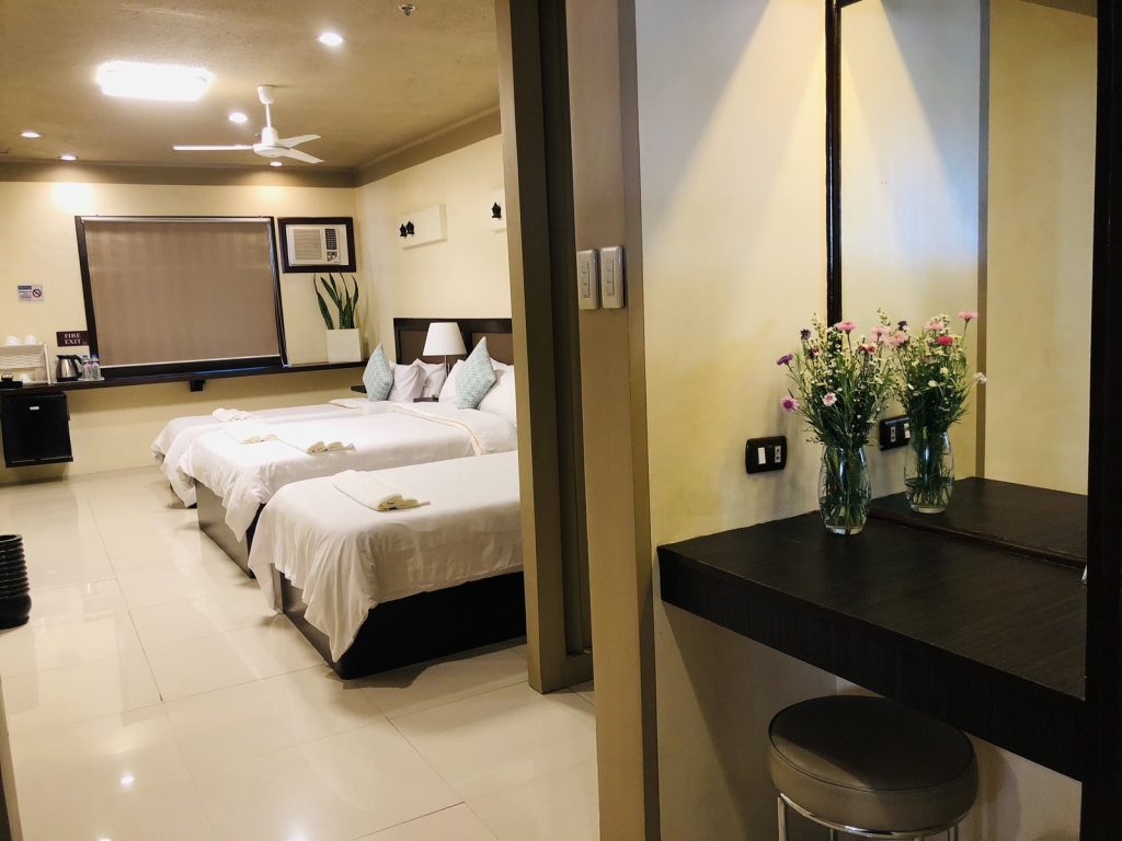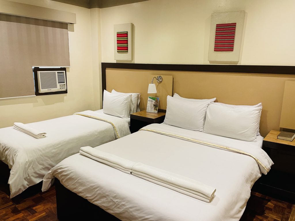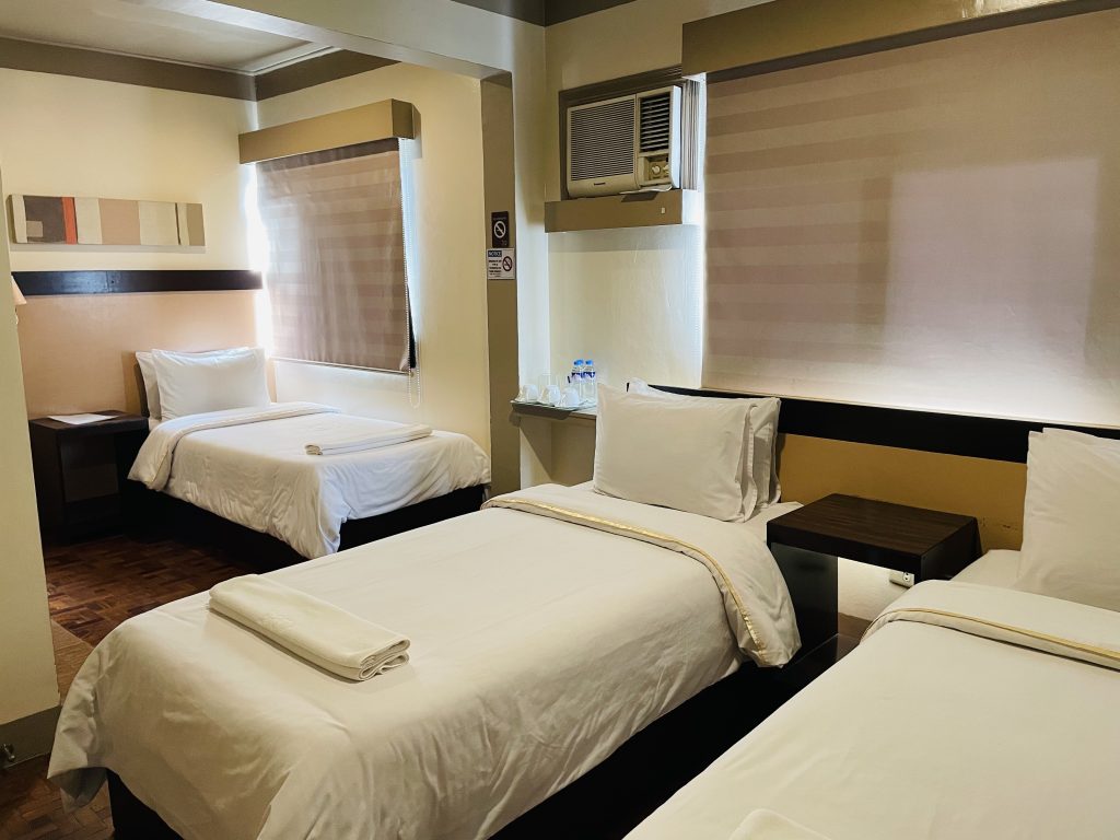 Aircon Room with 1 double bed and 1 single bed or 3 single beds, breakfast, hot and cold shower, cable TV and free use of Wifi.
