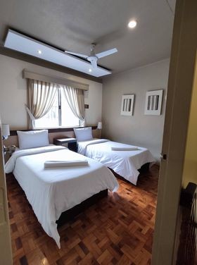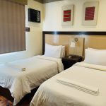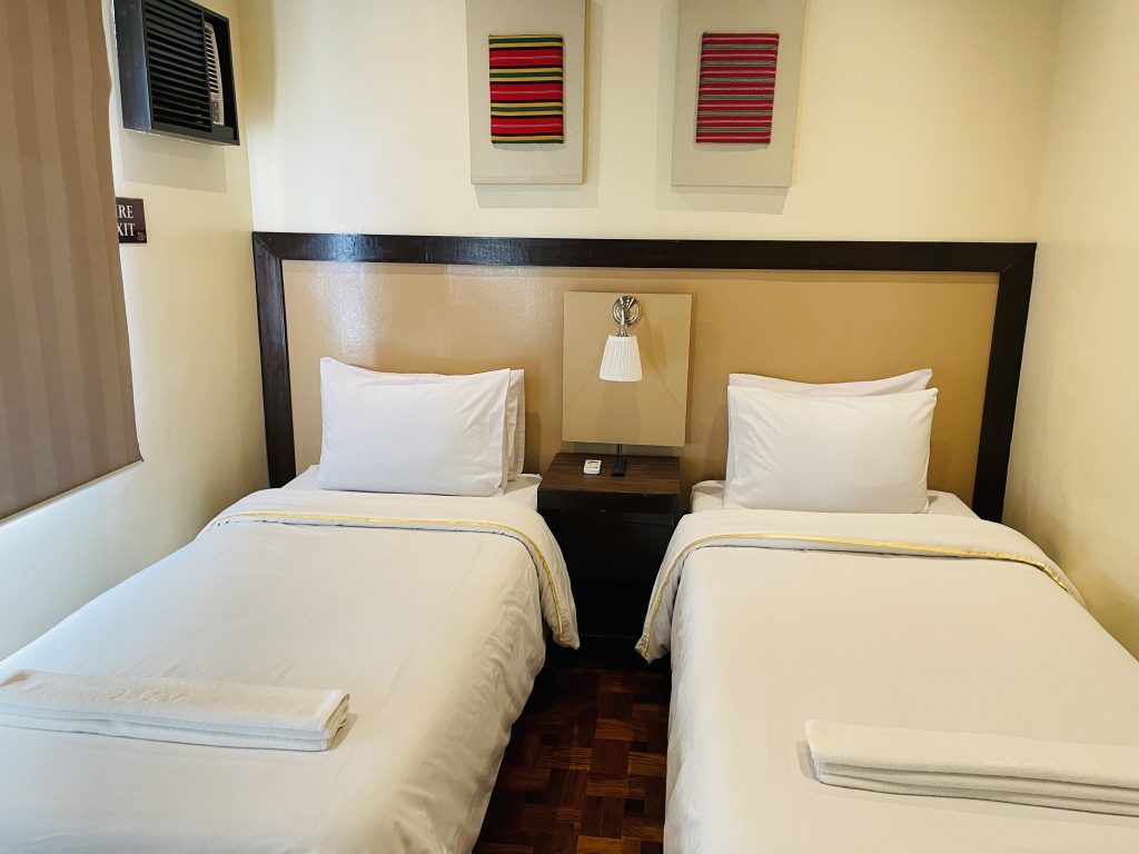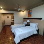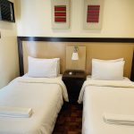 Aircon Room with 2 single beds, breakfast, hot and cold shower, cable TV and free use of Wifi.